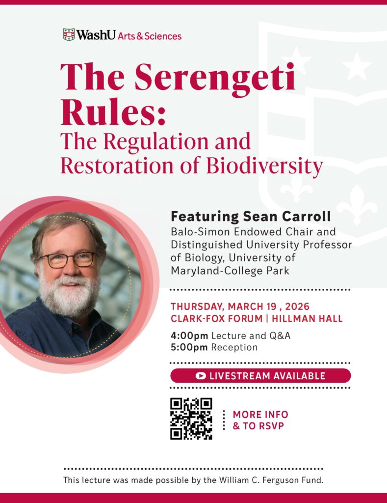Biologist, author, and film producer Sean B. Carroll will discuss the discovery of “The Serengeti Rules,” the ecological rules that regulate the numbers and kinds of animals and plants in any given place, and how they are being applied to restore some of the greatest wildernesses on the planet.