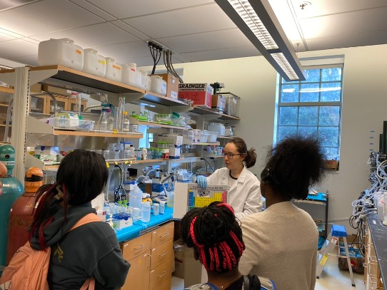 On campus, students toured two engineering labs, participating in curated experiments to simulate the scientific process and expose students to different tools and methods used in the laboratory.